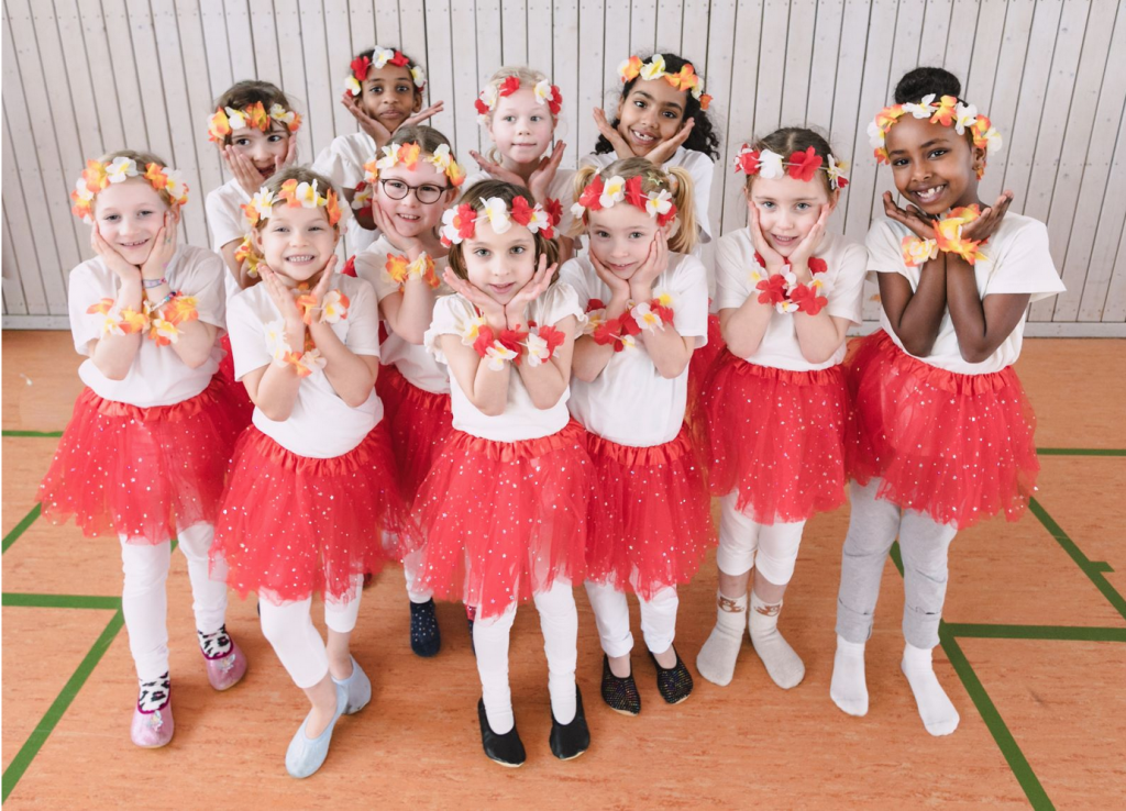 - Die Kinder erlernen erste Grundlagen im Jazz und Modern Dance/Contemporary und studieren kleine Choreographien ein. Durch spielerische Übungen werden Rhythmusgefühl und tänzerische Fähigkeiten geschult.
