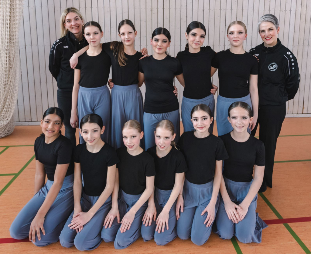 Diese Gruppe richtet sich an Kinder mit bereits vorhandener tänzerischer Erfahrung (z. B. JMC, Ballett oder Hip-Hop). Für die Tänzerinnen beginnt 2026 ein besonders aufregendes Kapitel: ihre erste Turniersaison. Sie gehen in der Kinderlandesliga Süd/Ost 2 an den Start.